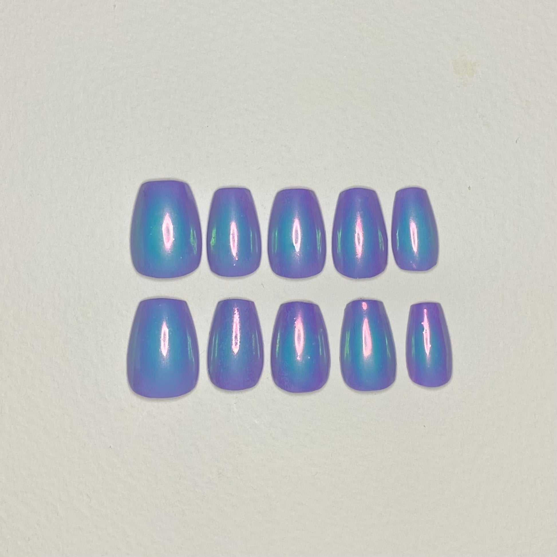 - Elements: purple gel with aqua aura and topped with iridescent chrome.
