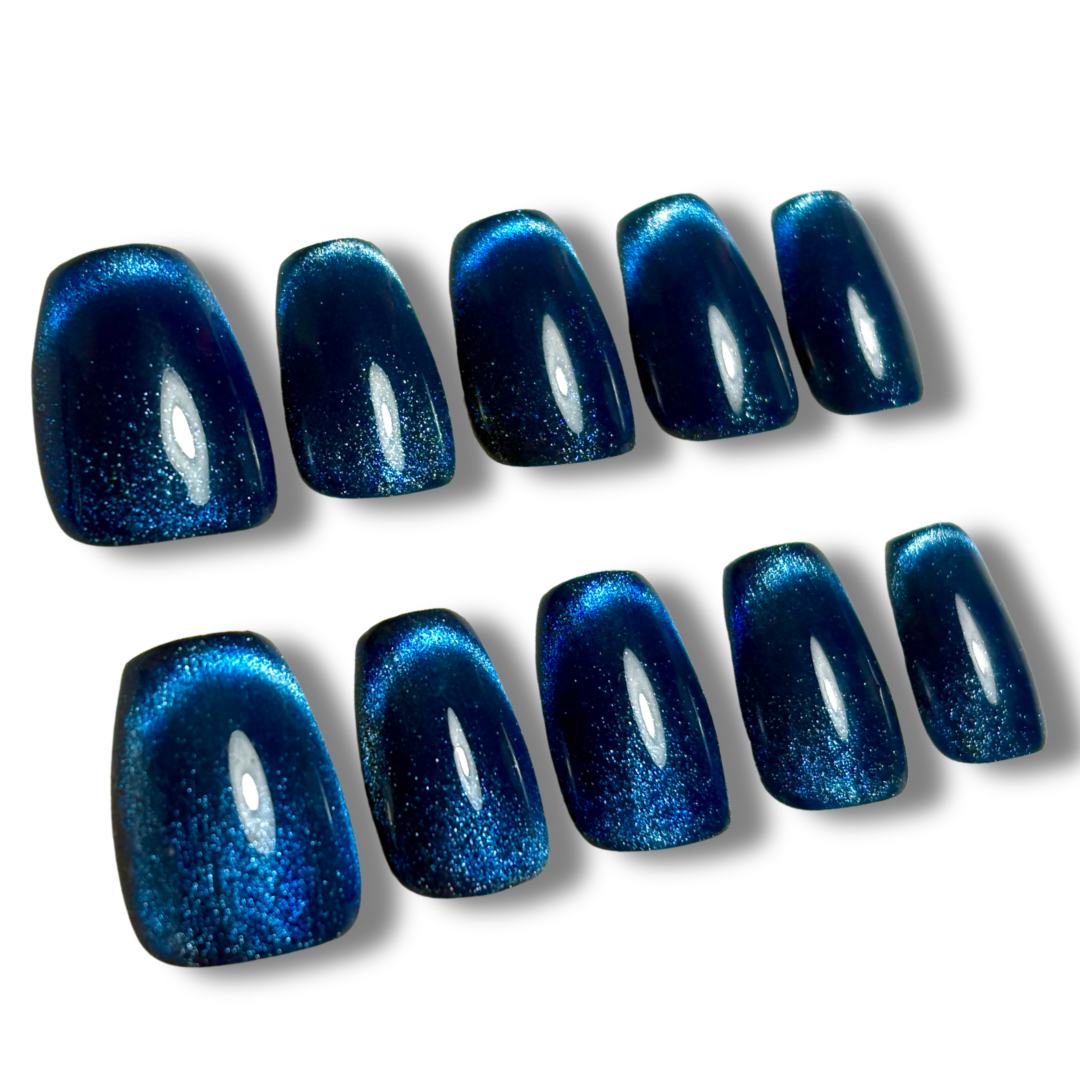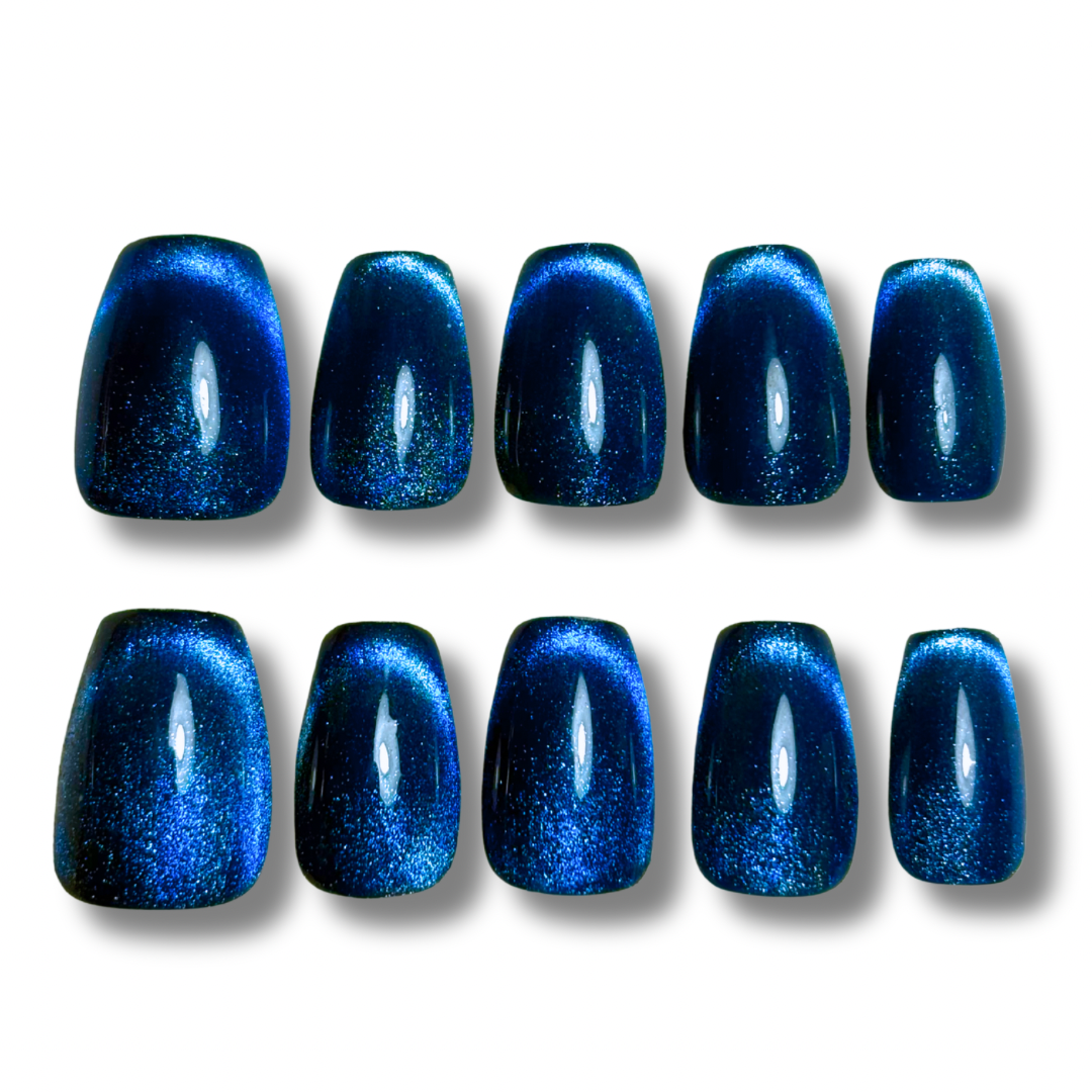 - Elements: blue cat-eye french design.