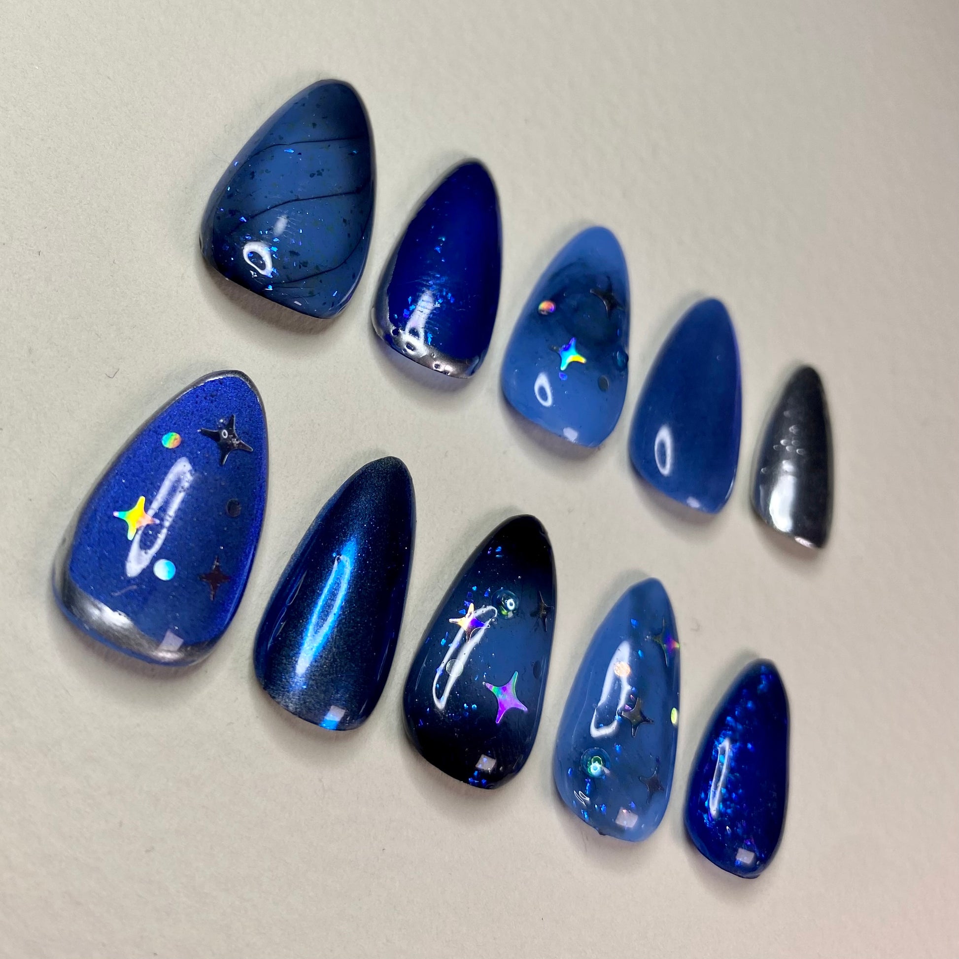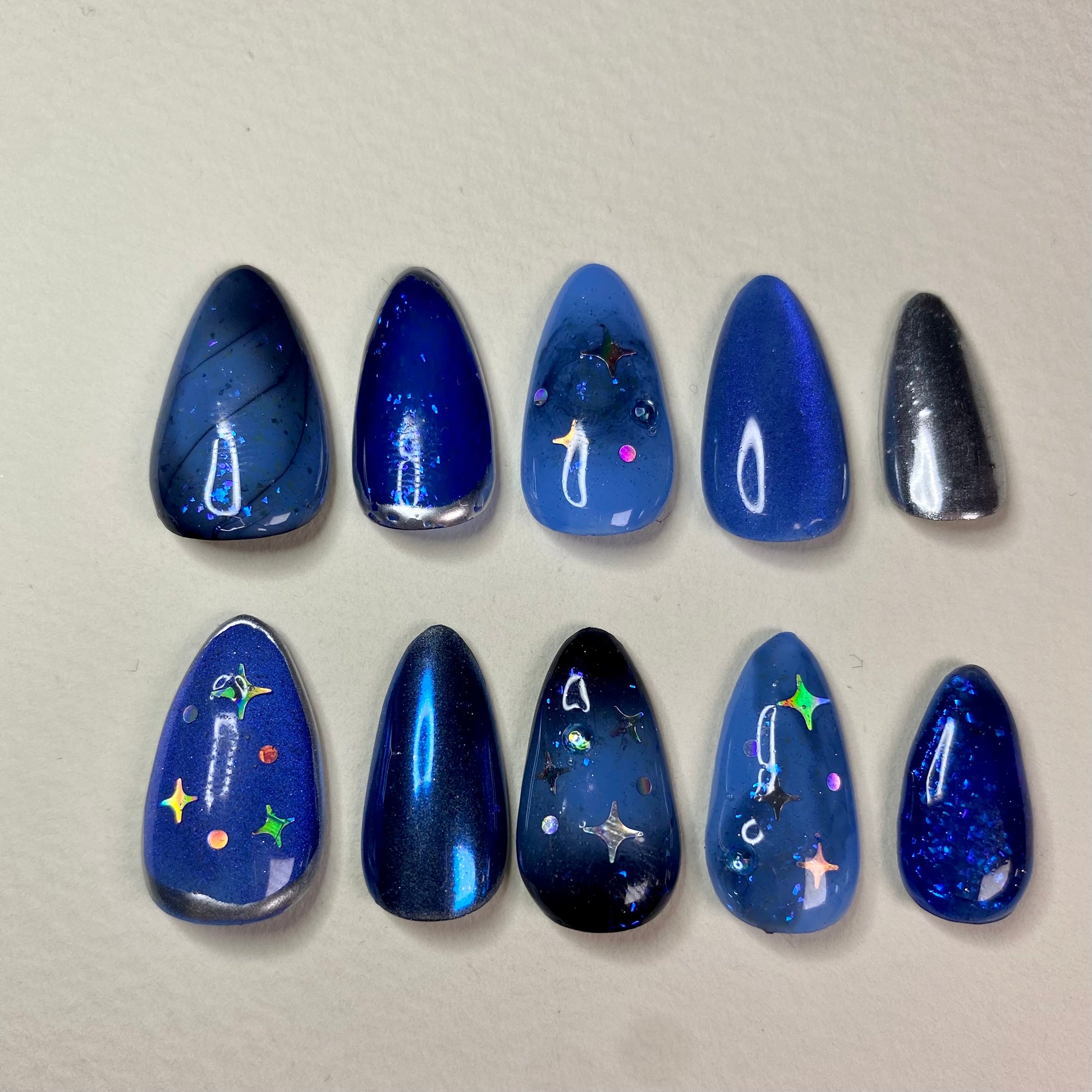 For custom sizing, please add the sizes of your nails in millimetres in an email with your name and order details in the order of: thumb, index, middle, ring, pinky. Example: 16mm, 12mm, 13mm, 12mm, 10mm.
