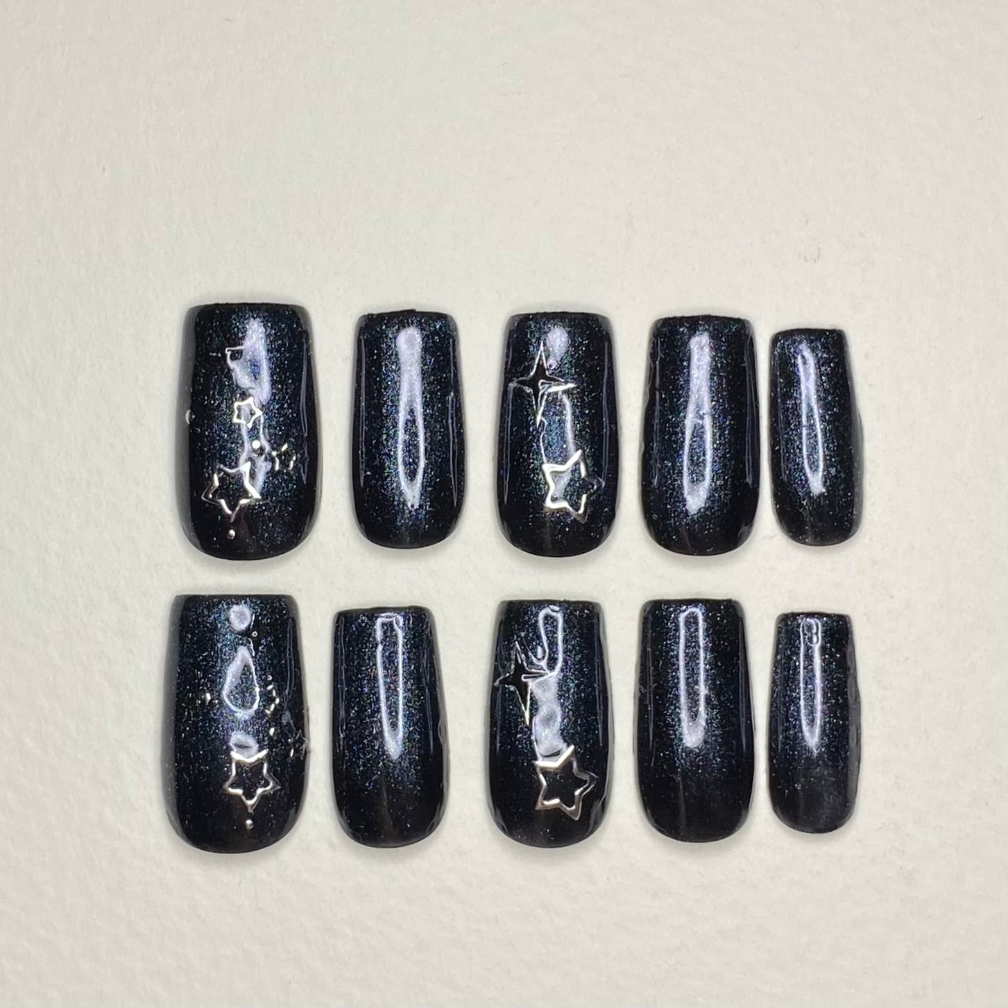 For custom sizing, please add the sizes of your nails in millimetres in an email with your name and order details in the order of: thumb, index, middle, ring, pinky. Example: 16mm, 12mm, 13mm, 12mm, 10mm.