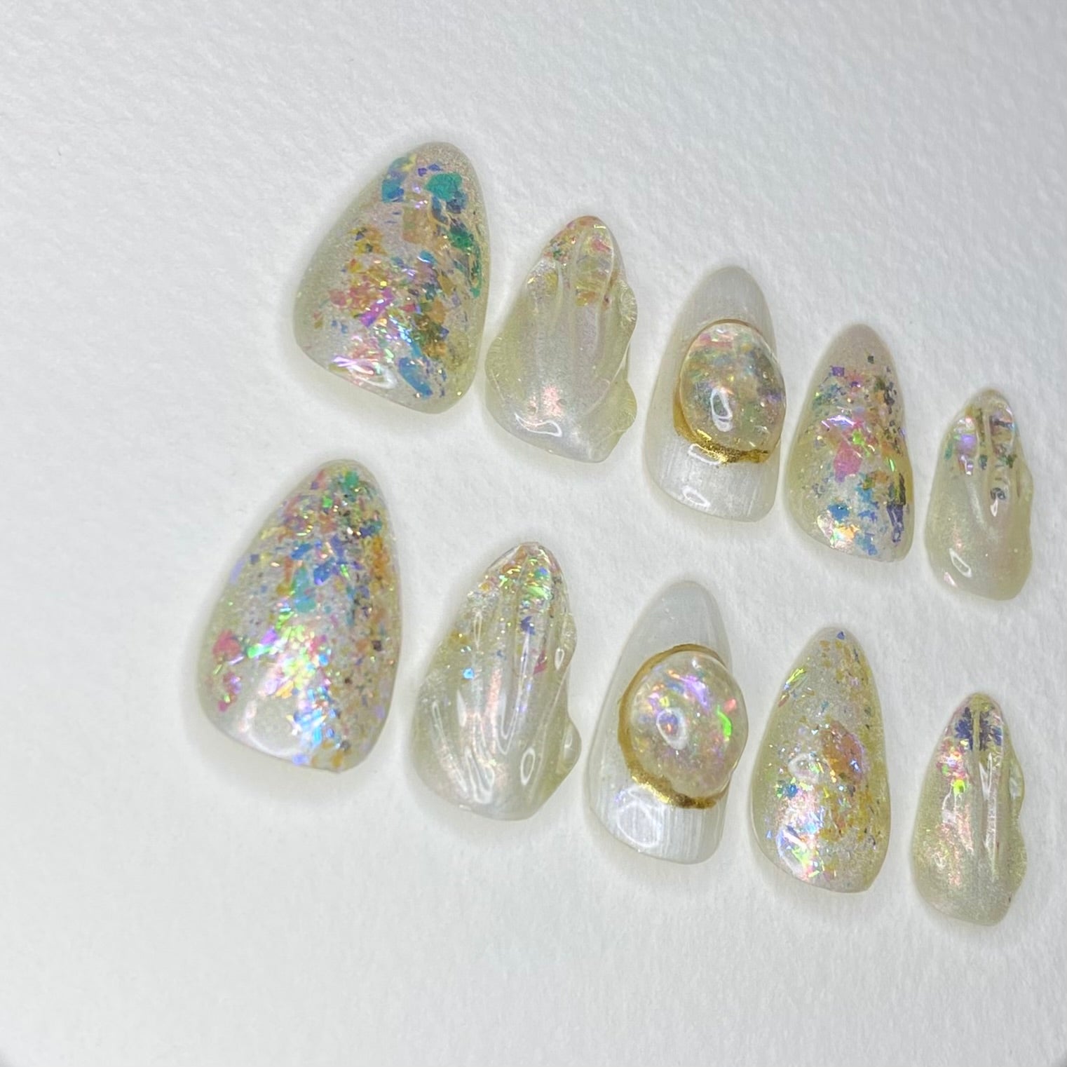- Elements: 3D shell nails, rainbow cateye and hand made opal charms.