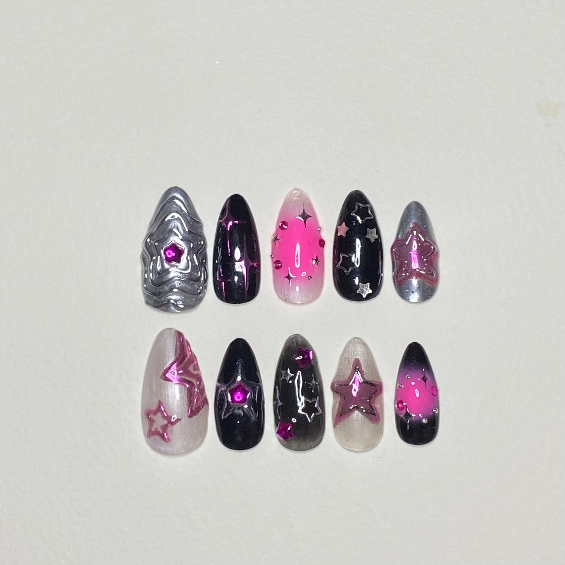 For custom sizing, please add the sizes of your nails in millimetres in an email with your name and order details in the order of: thumb, index, middle, ring, pinky. Example: 16mm, 12mm, 13mm, 12mm, 10mm.
