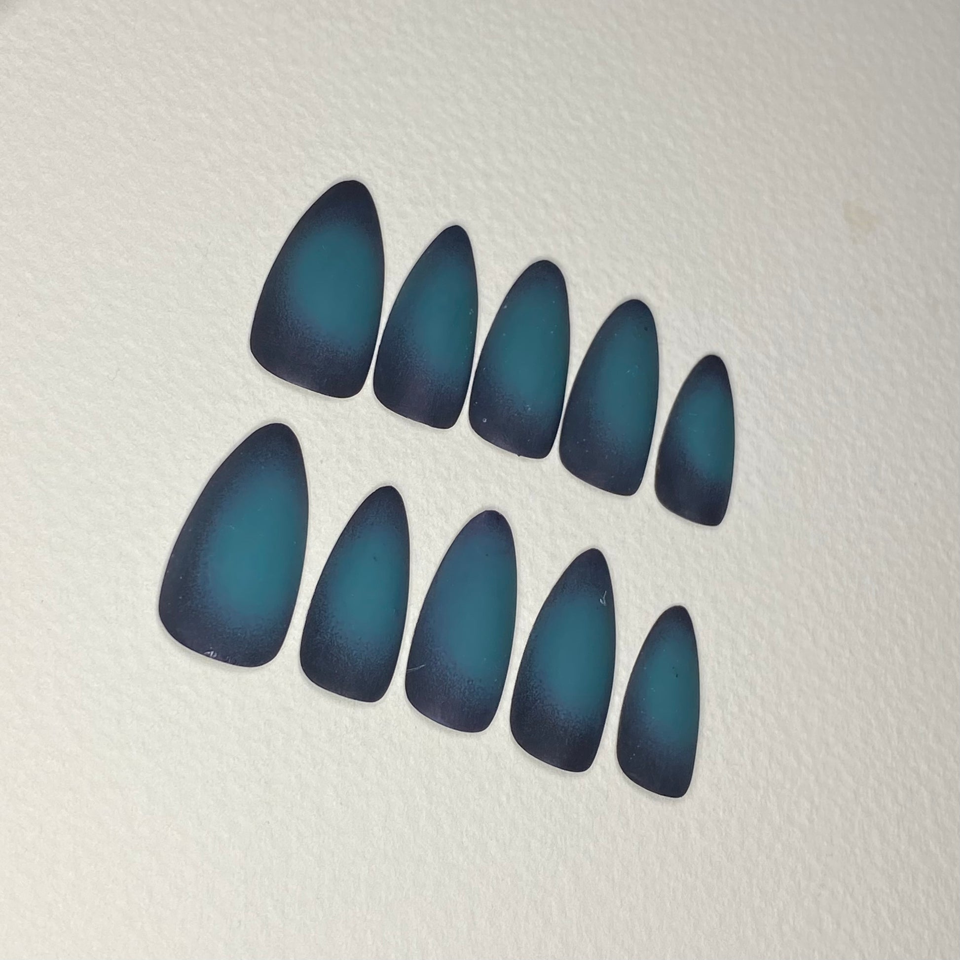 - Elements: black with a dark teal green aura. Topped with matte topcoat.